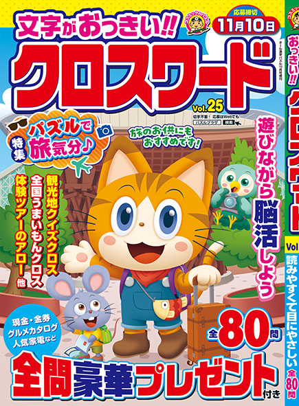 巻頭は「特集 パズルで旅気分♪」観光地クイズクロスや体験ツアーのアローなど、国内旅行にまつわるパズルが大集合!