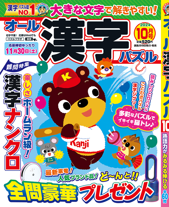 秋の夜長にじっくり遊べる難問特集!多彩な漢字ナンクロや、漢字ジグソーパズル、ことわざパズルなど、楽しく学べるバラエティーパズルも満載!