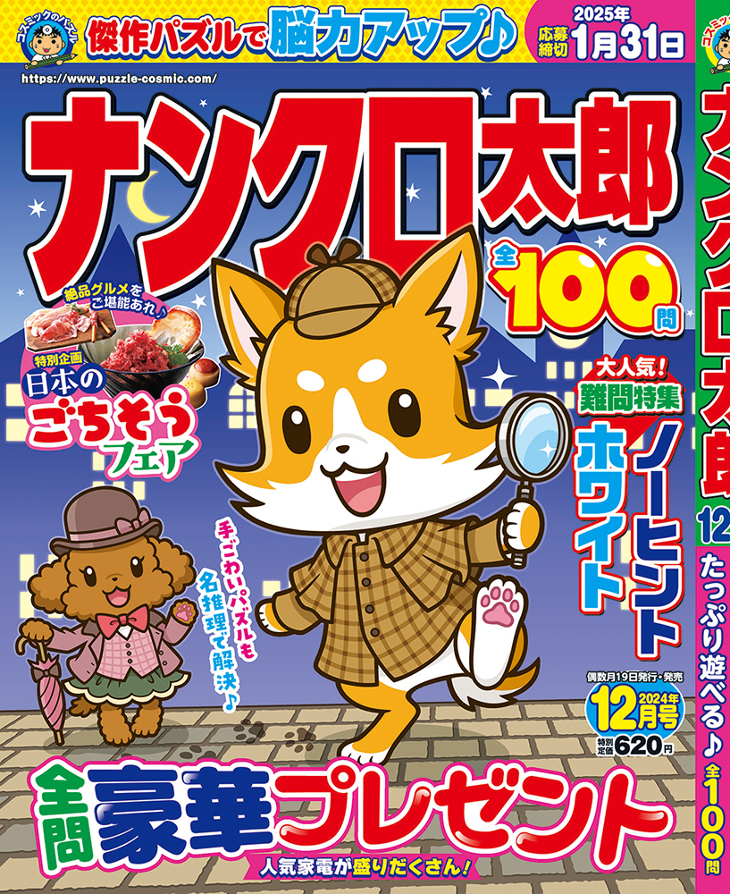 ナンクロ太郎12月号 発売日:2024.10.19 \ 620- (本体価格 564円 + 税 56円) ISBN:4910068751249 内容紹介 傑作パズルで脳力アップ! たっぷり遊べる全100問! 難問に挑戦しよう! 濁点・半濁点・ホワイト大特集♪ 人気家電やブランド品たっぷり! もちろん全問プレゼント付き♪ 応募締切は2025年1月31日! どんどん応募してね♪ もっとみる ご購入サイト