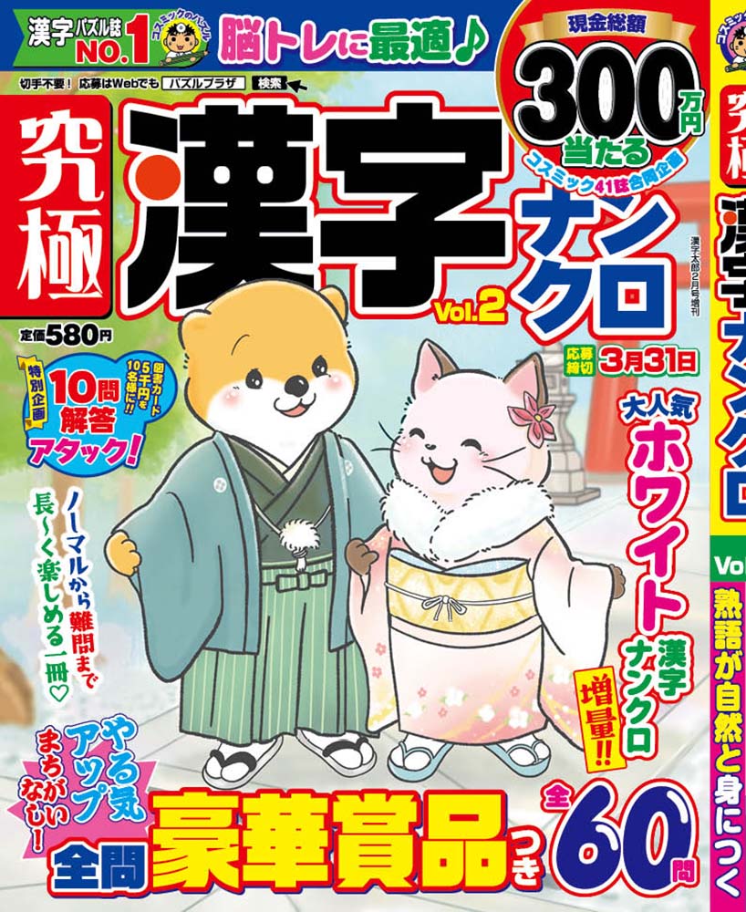 漢字ナンクロを心ゆくまで解こう♪今号は大人気のホワイト漢字ナンクロを増量!