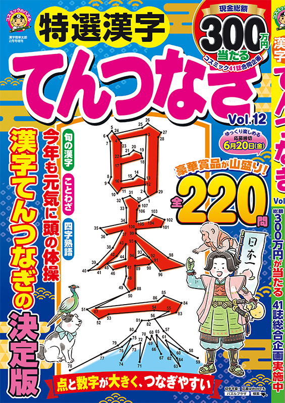 特選漢字てんつなぎ Vol.12 発売日:2025.01.14 \ 790- (本体価格 718円 + 税 72円) ISBN:4910026300250 内容紹介 総額300万円が当たる 41誌合同企画も実施中! 日本一の漢字てんつなぎ 旬の漢字やことわざ、四字熟語など 楽しく学べる一冊です。 大人気の変形ぬりえも収録! 子どもから大人までレッツトライ♡ 応募締め切りは、ゆっくり解いても安心の 2025年6月20日 ご応募お待ちしております もっとみる ご購入サイト