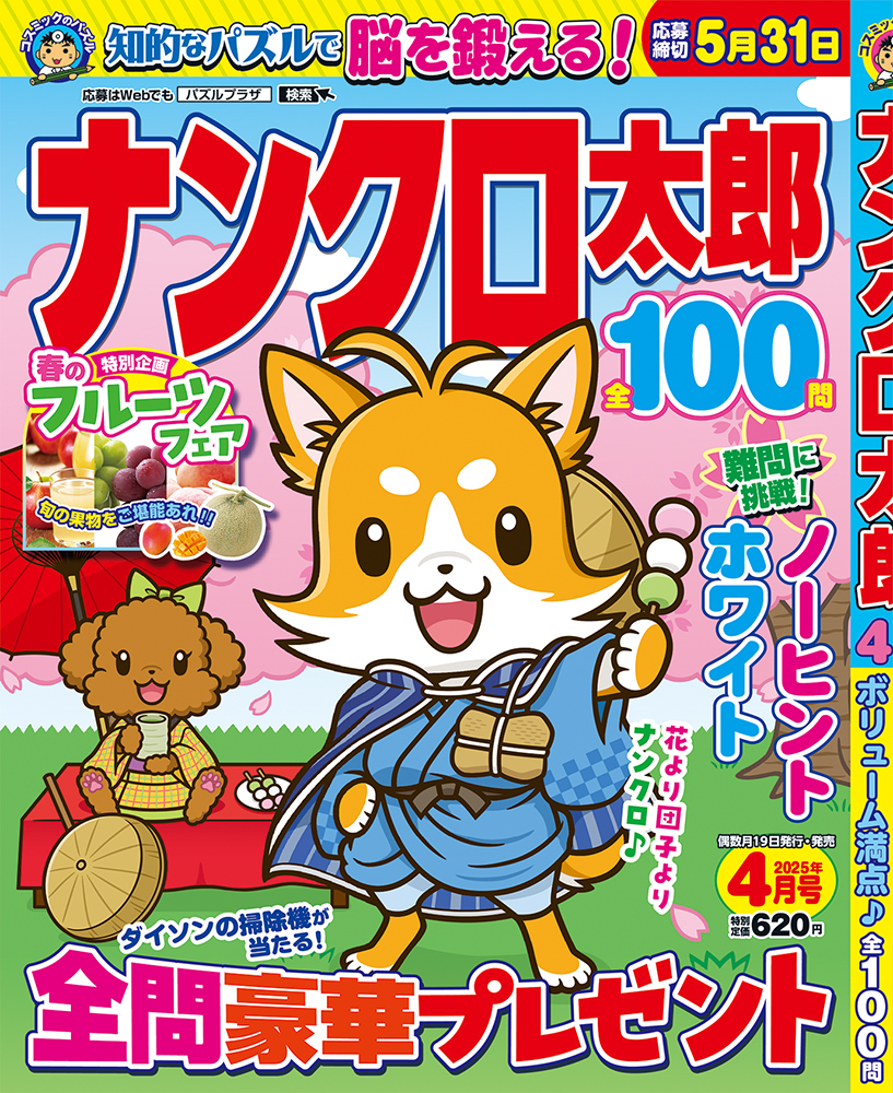 ナンクロ太郎4月号 発売日:2025.02.18 \ 620- (本体価格 564円 + 税 56円) ISBN:4910068750457 内容紹介 知的なパズルで脳を鍛える! ボリューム満点の全100問! 難問に挑戦しよう! 濁点・半濁点・ホワイト大特集♪ 特別企画 春のフルーツフェア 旬の果物がおうちに届くよ♪ 応募締切は5月31日! どんどん応募してね♪ もっとみる ご購入サイト
