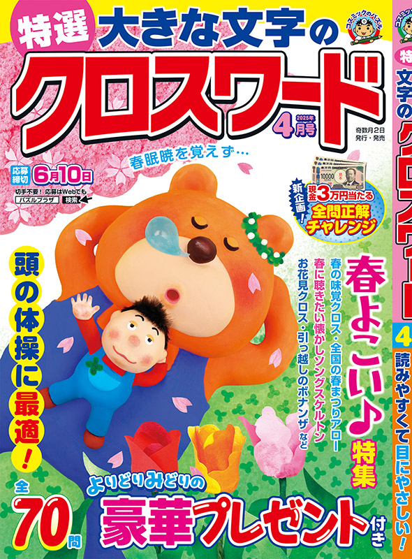今号は「春よこい♪」特集春の味覚クロス、全国の春まつりアロー、春に聴きたい懐かしソングスケルトンなど楽しい問題がたっぷり♪