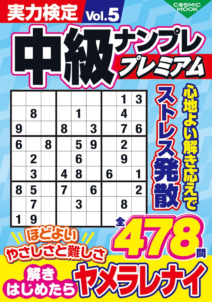 実力検定中級ナンプレプレミアムVol.5 発売日:2025.03.13 \ 730- (本体価格 664円 + 税 66円) ISBN:9784774744704 内容紹介 次から次に解きたくなる★ 大人気『実力検定中級ナンプレ』プレミアム版!! 解いて実感 頭脳のストレス解消に最適! 難しすぎず やさしすぎない 爽快な解き味がクセになる 厳選問題478問!! もっとみる ご購入サイト