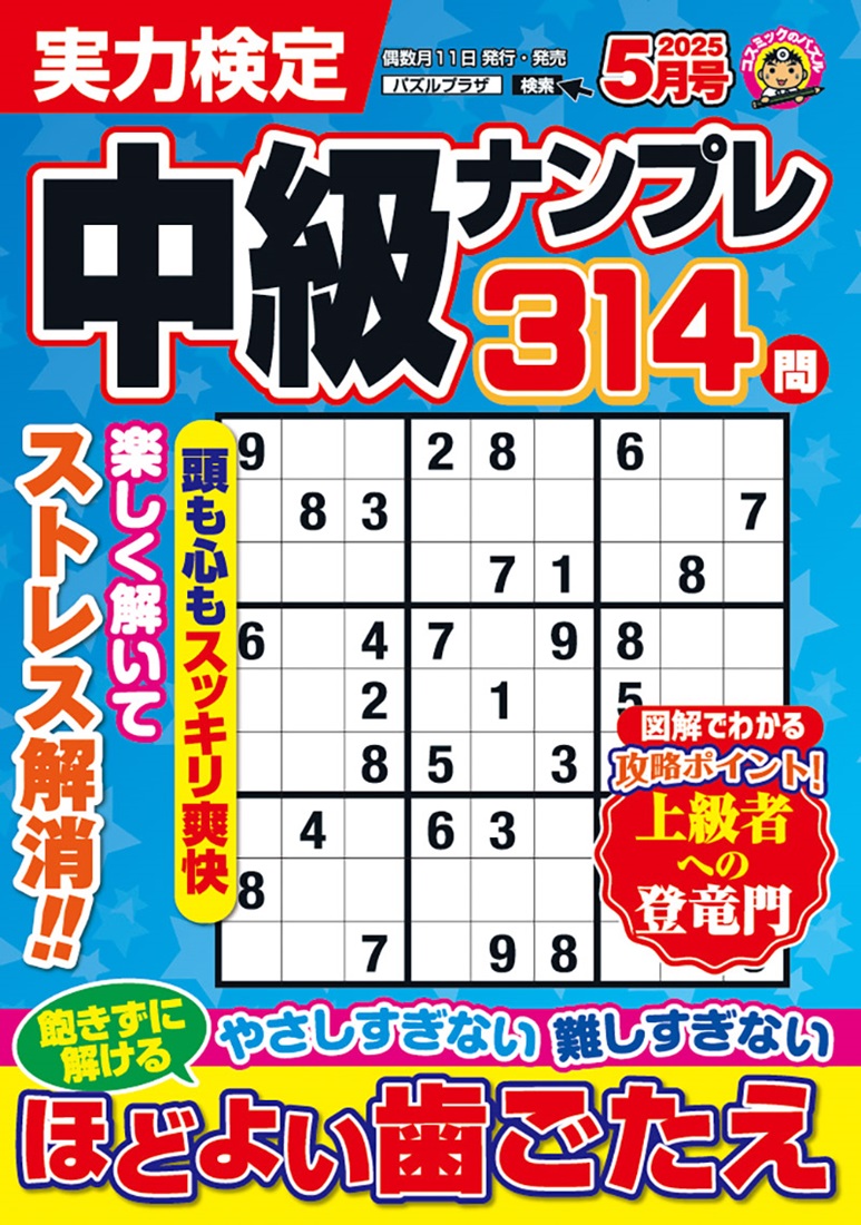 実力検定中級ナンプレ 5月号 発売日:2025.04.11 ふじいしのぶ \ 540- (本体価格 491円 + 税 49円) ISBN:4910043670558 内容紹介 サクサク解ける爽快感♪ 頭も心もストレス解消!! やさしすぎない 難しすぎない ほどよい解き心地がたまらない! 全314問に挑戦!! 図解でわかる攻略ポイント 「上級者への登竜門」で 目指せ 脱・中級★ もっとみる ご購入サイト