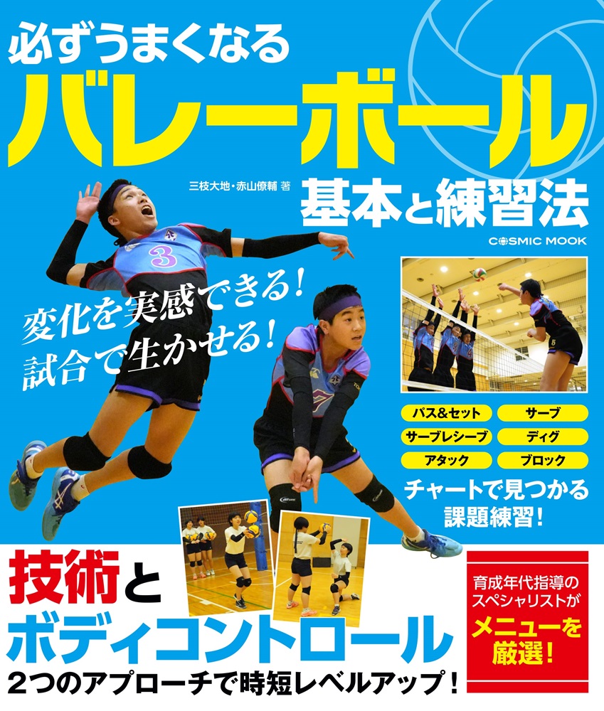 10年以上にわたりバレーボール女子のアンダーカテゴリー日本代表チームを指導する三枝大地氏と、アスレティックトレーナーとしてそのチームを支える赤山僚輔氏による、中高生以上および指導者を対象にしたレッスン書です。バレーボールで不可欠なパス・セット、サーブ、サーブレシーブ、スパイクなどのスキルを章ごとに分け、練習メニューを紹介。見開きの2ページで、ボールを使った「技術向上のためのメニュー」と、技術向上のために必要な体の使い方や動作の質を高めるための「ボディコントロールのメニュー」を紹介しています。これらを“ミルフィーユ”のように重ねて取り組んでいくことで、効率よくパフォーマンスアップの向上が図れます。