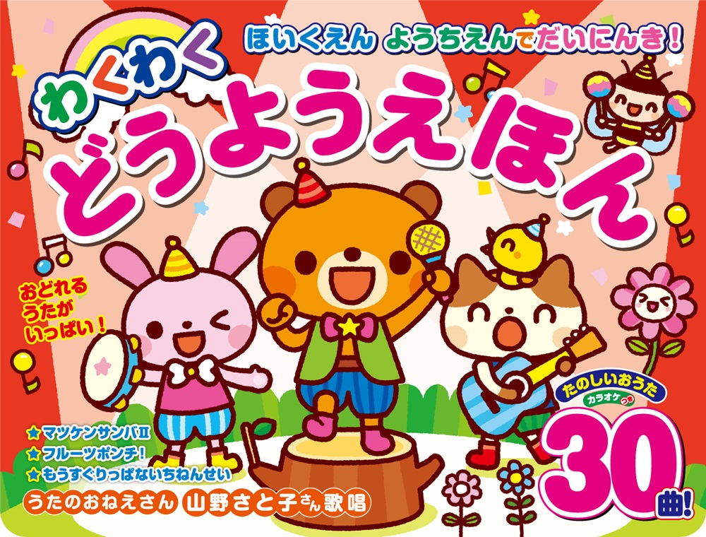 どうようえほんシリーズの新アイテムが登場!いま保育園や幼稚園で人気の30曲を厳選して収録。