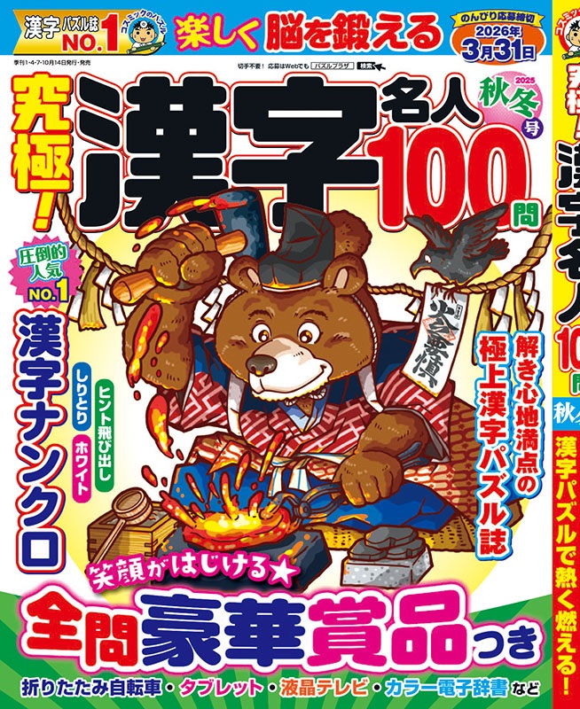 この一冊で、ミニパズルから4ページサイズの超ジャンボ漢字ナンクロまで楽しめます★今号はホワイト漢字ナンクロやヒント飛び出し漢字ナンクロもたっぷり♪