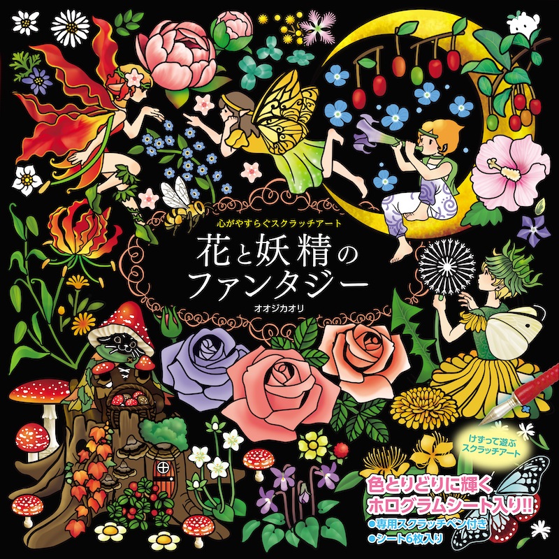 弊社既刊のスクラッチアート「ときめく花と蝶のファンタジー」「花と動物たちのファンタジー 十二支編上・下」も大好評発売中!