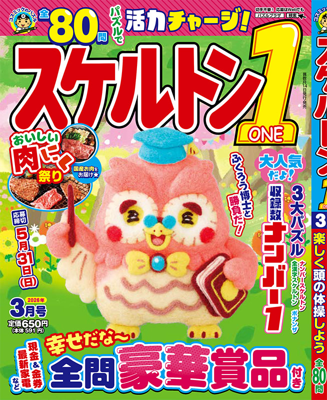 ふくろう博士と対決だ〜! 偶数月のお楽しみ♥ 全80問 『スケルトン1』 3月号!!