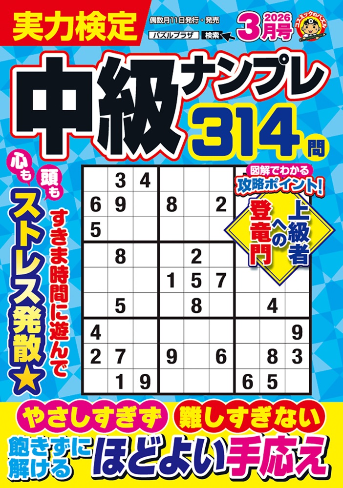 NEW 実力検定中級ナンプレ 3月号 発売日:2026.02.10 ふじいしのぶ \ 540- (本体価格 491円 + 税 49円) ISBN:4912043670361 内容紹介 解き味爽快な中級問題 すきま時間に毎日遊んで 頭も心もストレス発散★ やさしすぎず 難しすぎない 飽きずに解ける ほどよい手応え 全314問に挑戦!! 図解でわかる攻略ポイント 「上級者への登竜門」で 一足お先に春を先取り! もっとみる ご購入サイト