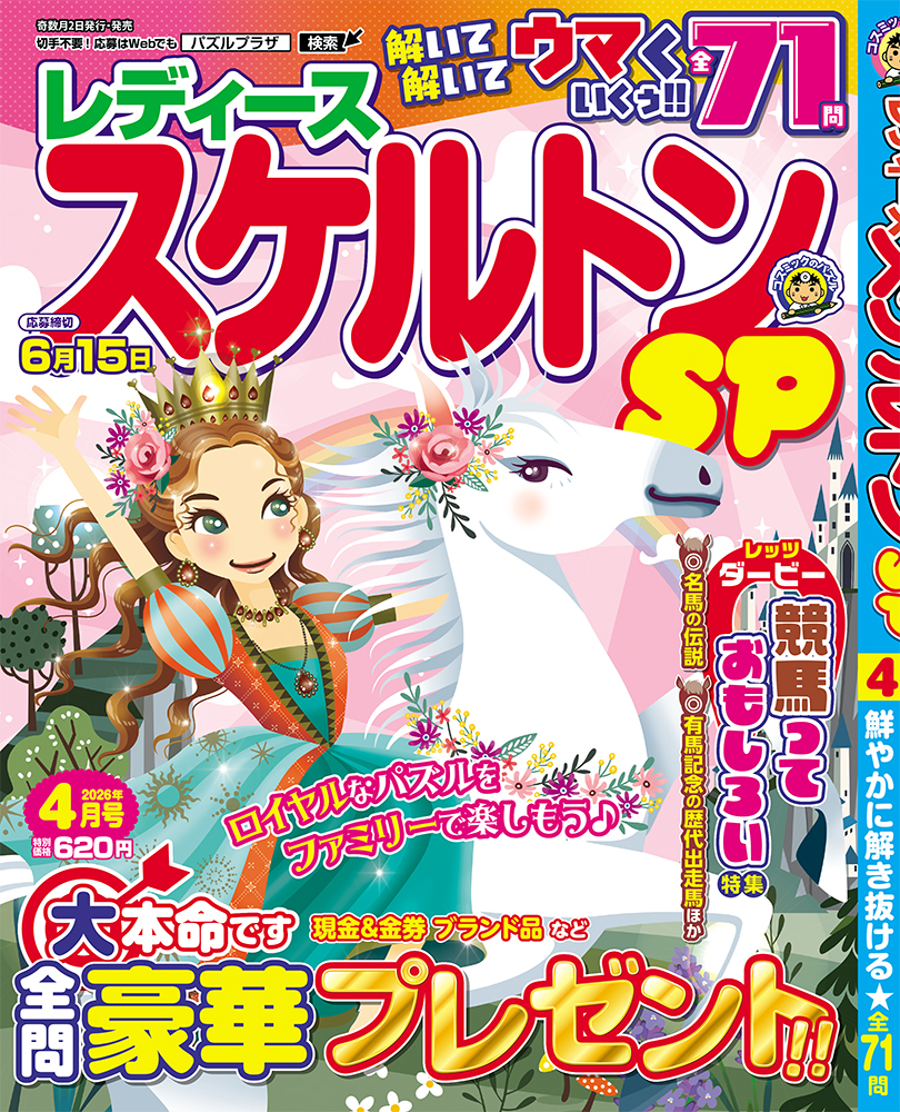 巻頭カラー かわいいね♪ 春のお花めぐり スケルトン、はてさてフム~? 春にまつわる雑学 アローなど、 パッと鮮やかでときめく問題がズラリ!レッツダービー 競馬っておもしろい 特集
