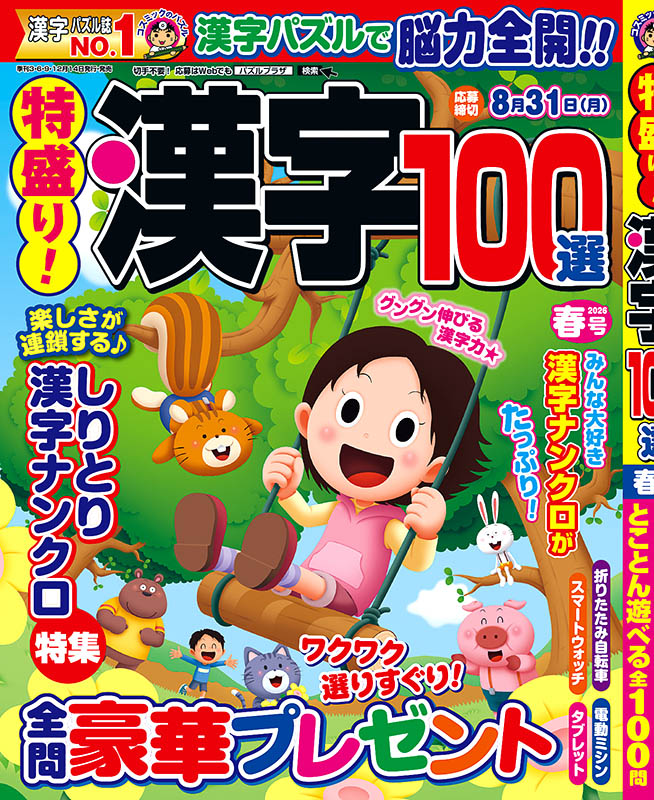 今号の特集は定番の「しりとり漢字ナンクロ」。極上のしりとり10問を存分に味わってね♪