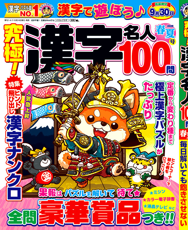 ミニパズルから4ページサイズの超ジャンボ漢字ナンクロまで、ビギナーから上級者まで楽しめます!